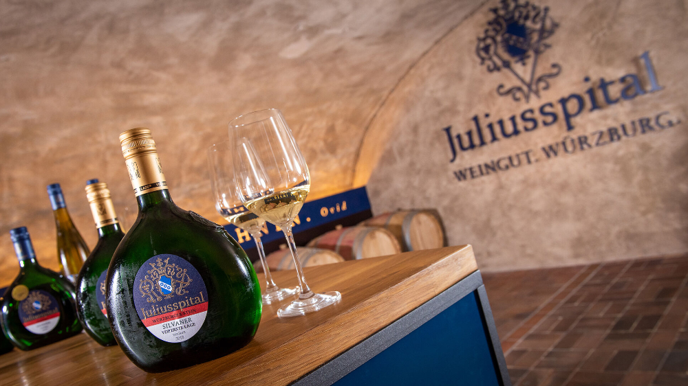ist eines der ältesten und größten Weingüter Deutschlands. Mit 180 Hektar Rebfläche zählt es zu den bedeutendsten Weinproduzenten Frankens. Das Weingut bewirtschaftet Spitzenlagen wie den Würzburger Stein und den Randersackerer Pfülben. Es ist bekannt für hochwertige Silvaner und Riesling, aber auch für Burgundersorten. Die Weine werden traditionell in Bocksbeuteln abgefüllt. Juliusspital verbindet erfolgreich Tradition mit moderner Kellertechnik. Das Weingut ist Teil einer Stiftung, die auch ein Krankenhaus und andere soziale Einrichtungen betreibt. Die Erlöse aus dem Weinverkauf fließen in diese sozialen Projekte. Das historische Kellergewölbe des Juliusspitals, eines der größten Holzfassweinkeller Deutschlands, ist eine beliebte Touristenattraktion. Regelmäßig werden Führungen und Weinproben angeboten.