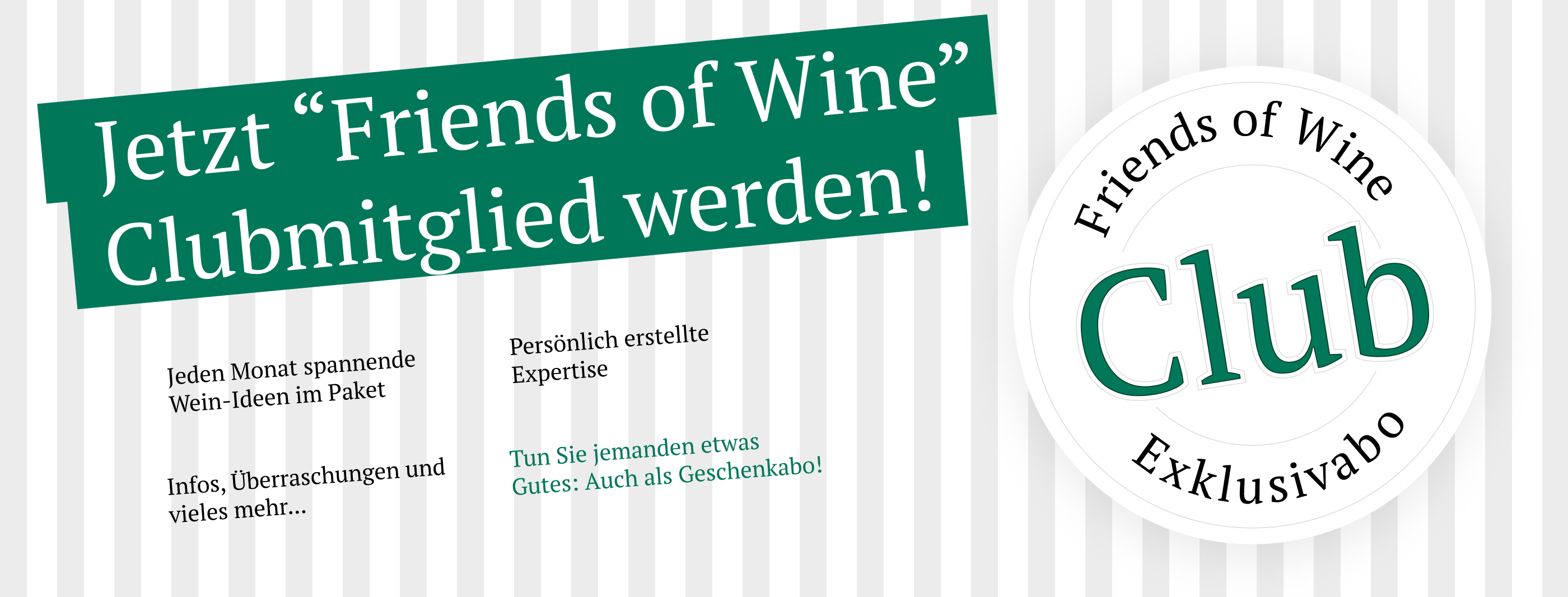 Wir freuen uns sehr, euch als Mitglied im "FRIENDS OF WINE CLUB" begrüßen zu dürfen.