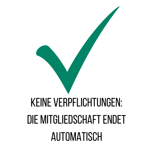 - Ihr geht KEINE VERPFLICHTUNGEN ein. Die Mitgliedschaft endet automatisch nach dem gewünschten 3-, 6- oder 12-Monatsabo.