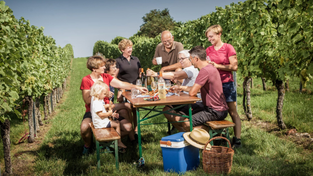 verbindet Tradition mit moderner Weinbereitung. Auf etwa 10 Hektar Rebfläche werden hauptsächlich Burgundersorten, Riesling und Gewürztraminer angebaut, wobei ein Großteil der Weinberge auf französischem Boden liegt. Die Familie Grimm folgt dem Grundsatz "Wein entsteht im Weinberg" und setzt auf schonende, intensive Bewirtschaftung. Besonders stolz ist man auf alte Rebstöcke, die charaktervolle Spätlesen hervorbringen. Das Weingut hat eine eigene Klassifizierung entwickelt: Blaukapsel (Basisweine), Silberkapsel (bessere Lagen) und Goldkapsel (Top-Segment). Mit dieser Kombination aus Tradition, Qualität und Innovation hat sich das Weingut Grimm als charaktervoller Vertreter des Rheingaus etabliert.