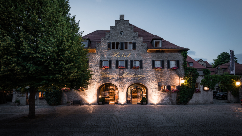 befindet sich seit 1790 im Familienbesitz, jedoch gewann der Weinbau erst 2005 an Bedeutung, als Jochen und Michaela Meintzinger in der 8. Generation das Weingut übernahmen. Auf 26 Hektar Rebfläche produziert Meintzinger qualitativ hochwertige Weine. Das Weingut setzt auf reduzierte Erträge und ausschließliche Handlese, teilweise erst im November, um extraktreiche Trauben zu erhalten. Die schnelle und schonende Verarbeitung bewahrt den charakteristischen Geschmack der Trauben. Das Terroir ist geprägt von Muschelkalkböden, die den Weinen eine angenehme Mineralität verleihen. Meintzinger produziert verschiedene Weinlinien, darunter unkomplizierte Gutsweine, klassische fränkische Weine im Bocksbeutel und hochwertige Weine aus der Lage "Frickenhäuser Kapellenberg". Mit der Kombination aus Tradition und Innovation hat sich das Weingut Meintzinger einen guten Ruf erarbeitet und wird von Weinkritikern geschätzt.